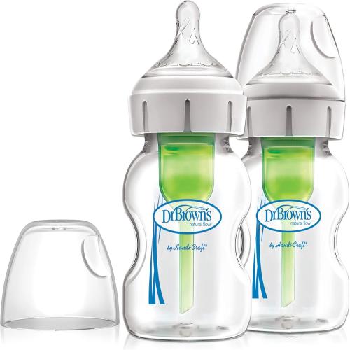 BOTTLE GROWS WITH BABY. Dr. Brown’s Natural Flow Anti-Colic Options+ baby bottle works best with the internal vent system in place but can be removed as baby’s feeding develops – no need to introduce a different bottle.